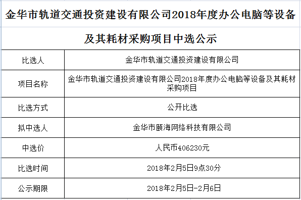 金華市金義東軌道交通有限公司運營軌道交通智能巡檢系統(tǒng)采購項目中標(biāo)候選人公示