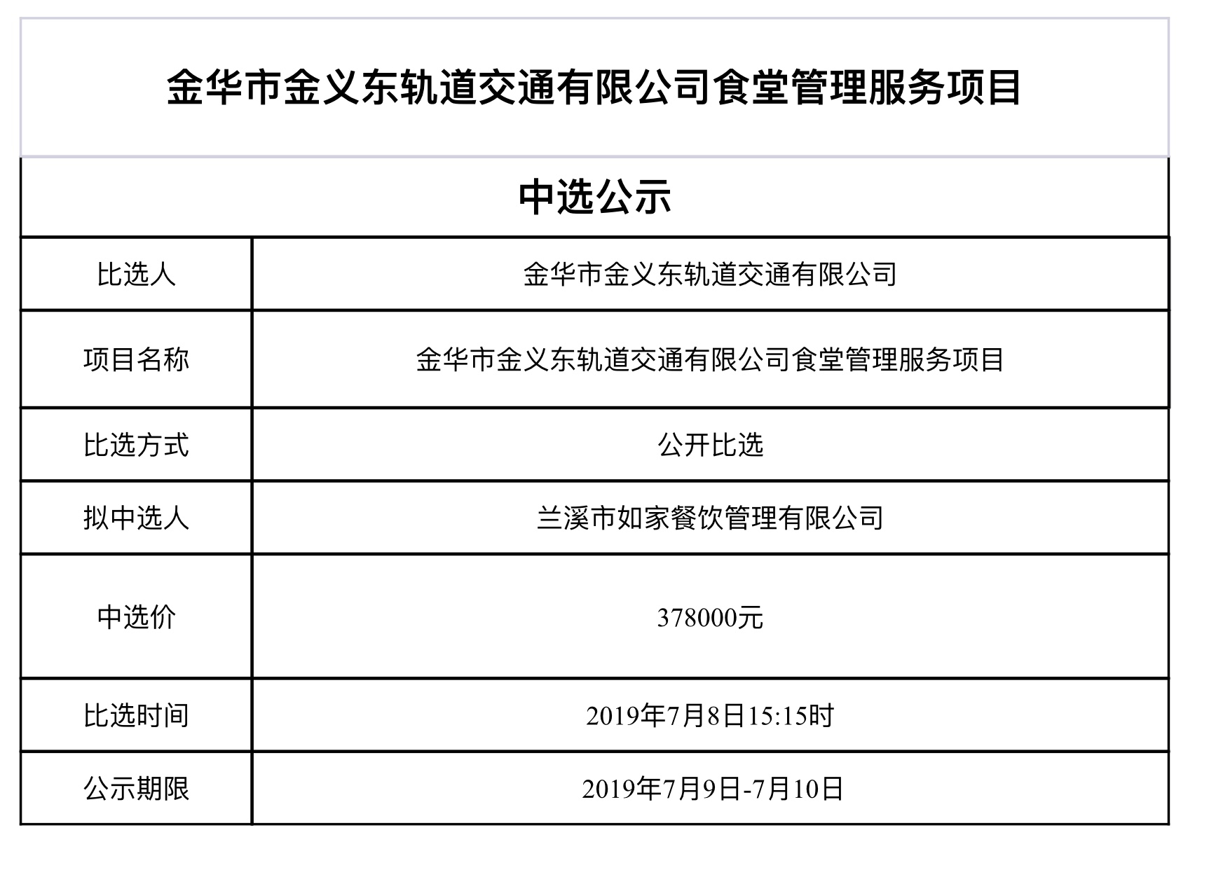 金華市金義東軌道交通有限公司運營環(huán)境長效管理系統(tǒng)項目中標候選人公示