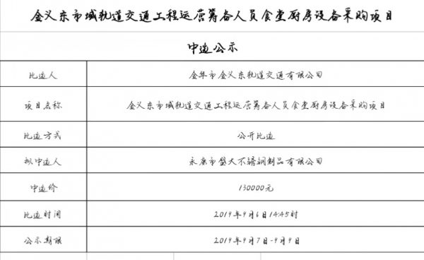 金華市金義東軌道交通有限公司運營環(huán)境長效管理系統(tǒng)項目中標(biāo)候選人公示