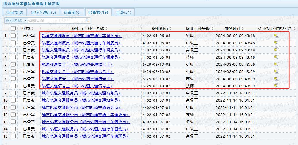 近期,經(jīng)浙江省技能人才評(píng)價(jià)管理服務(wù)中心批復(fù),市軌道交通集團(tuán)運(yùn)營(yíng)公司職業(yè)技能等級(jí)認(rèn)定評(píng)價(jià)機(jī)構(gòu)順利擴(kuò)大認(rèn)定范圍,新增城市軌道交通信號(hào)工、城市軌道交通行車調(diào)度員2個(gè)工種。