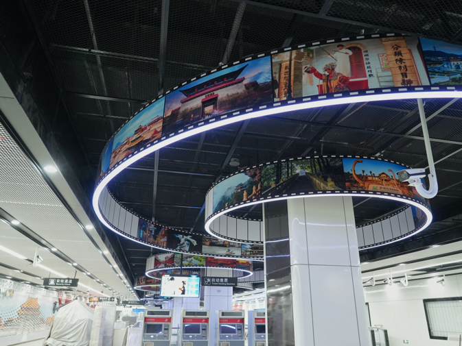 近年來,金華影視文化產(chǎn)業(yè)已成為全省萬億級文化產(chǎn)業(yè)發(fā)展的一面旗幟,金華軌道交通以“金軌‘橫’有戲”為主題,將橫店影視城作為中心,巧妙串聯(lián)起明清宮站和橫店高鐵站,打造了影視主題夢幻車站,成為了展現(xiàn)影視文化魅力的新名片。
