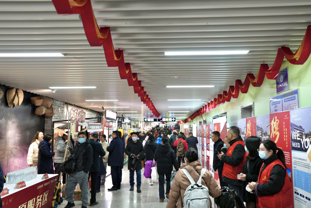 為給返鄉(xiāng)過年的新老金華人提供更優(yōu)質的暖心服務,1月17日上午,2025年金華市“春風行動”啟動儀式暨“就業(yè)在金華 金軌伴您歸”活動在軌道交通金華站順利舉行。金華市副市長莊凌飛,市人力社保局、市總工會、團市委、市文聯、市軌道交通集團相關領導出席活動。